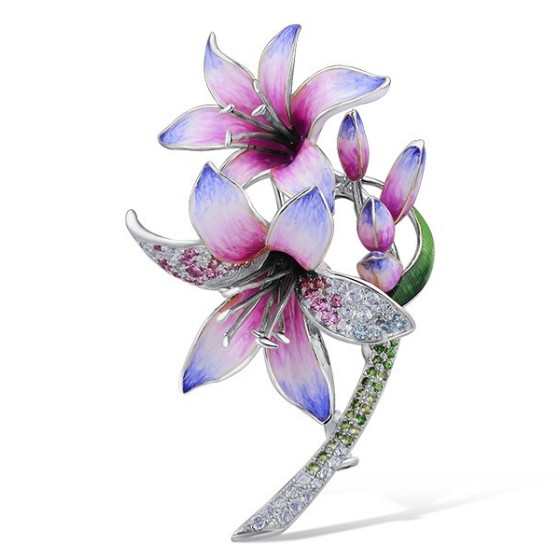9KYW Brooch Blue Topaz (Swiss Blue),Diamond,Enamel,Green Garnet,Pink Sapphire (O314176ENA9KYW)