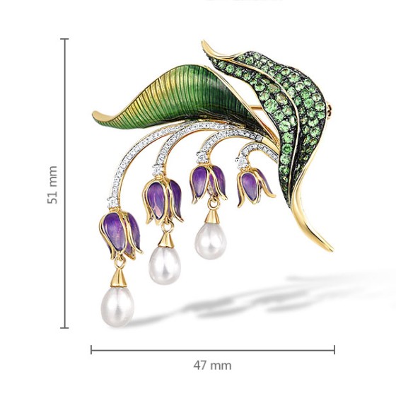 9KYWB Brooch Diamond,Enamel,Fresh Water White Pearl,Green Garnet (O314172ENA9KYWB)