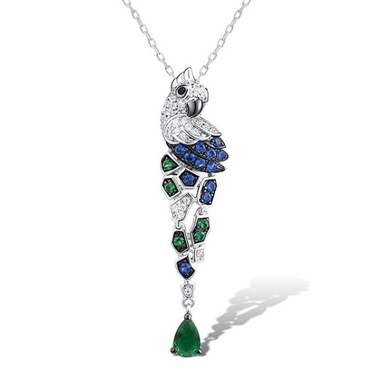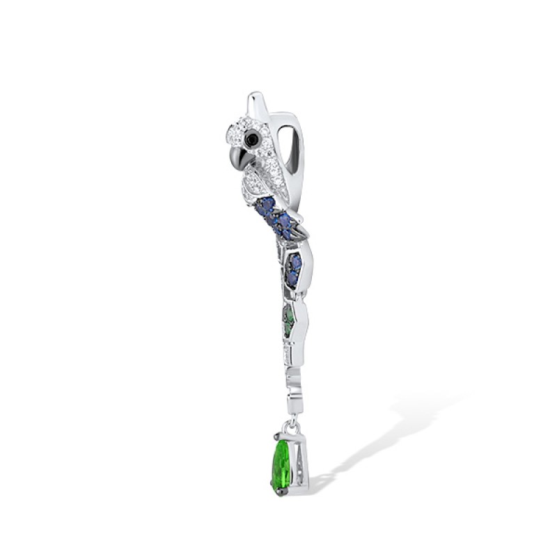 Sterling Silver w/ Black White Plating Pendant Black spinel,Blue Nano Cubic Zirconia,Green Glass,Green Spinel,White Cubic Zirconia (P312949SMULSK925)