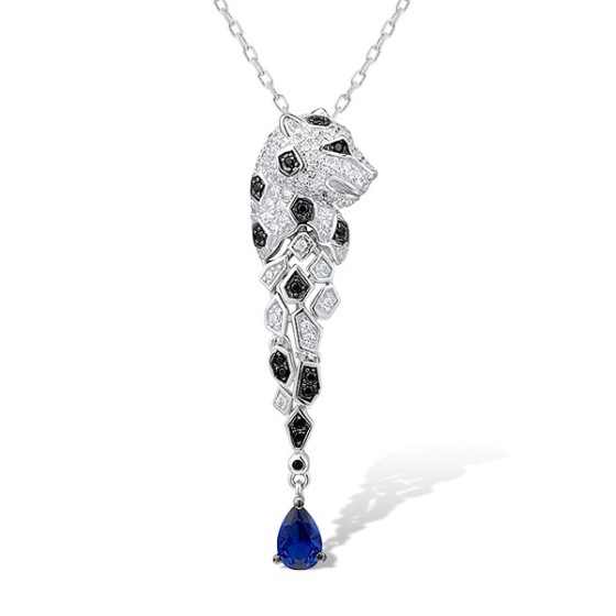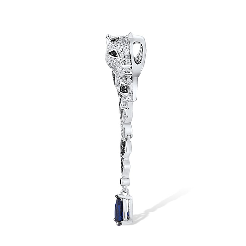 Sterling Silver w/ Black White Plating Pendant Black spinel,Blue Nano Cubic Zirconia,White Cubic Zirconia (P312945SBNSZSK925)