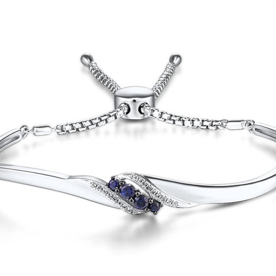 Sterling Silver w/ Black White Plating Bangle Blue Nano Cubic Zirconia,White Cubic Zirconia (G311508BZZSK925)