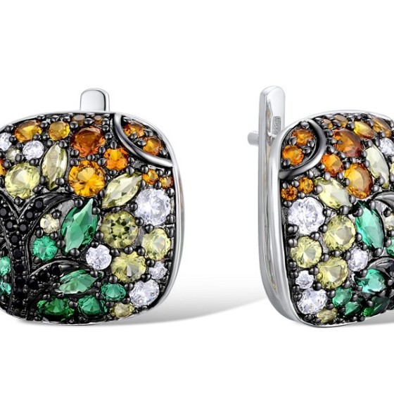 Sterling Silver w/ Black White Plating Earrings Black spinel,Green Nano Cubic Zirconia (Per,Green Spinel,White Cubic Zirconia,Yellow Nano Cubic Zirconia (Ci (E311068MULSK925)