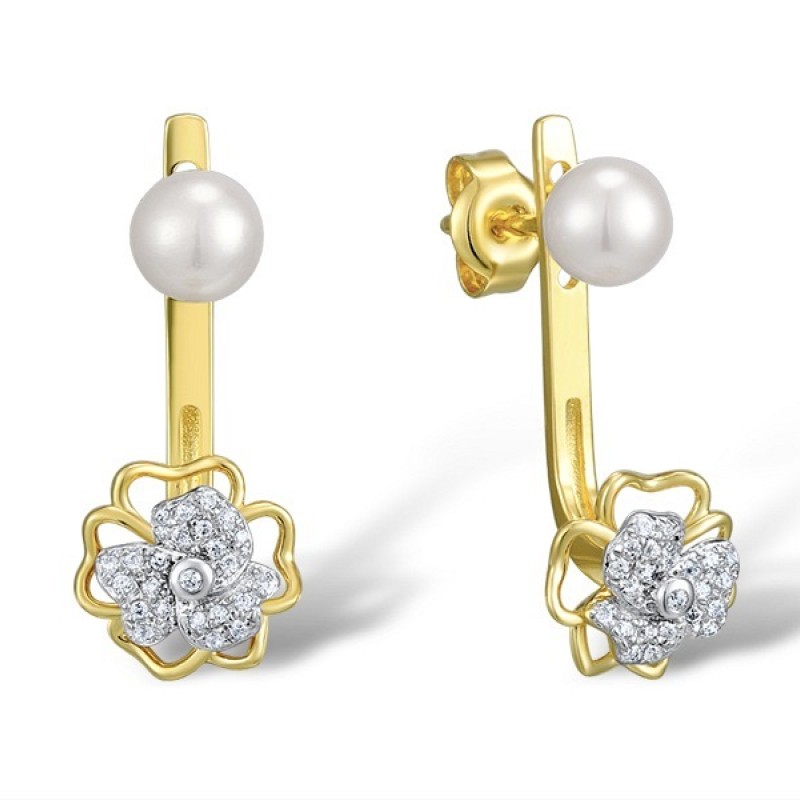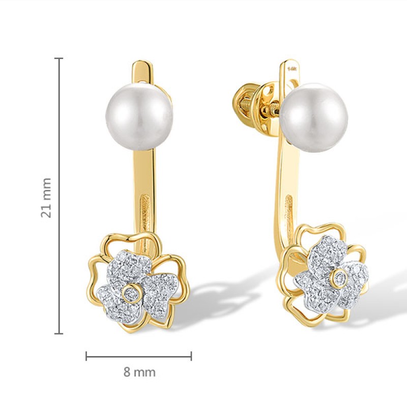 14KYW Earrings Diamond,Fresh Water White Pearl (E309427AFWP14KYW)