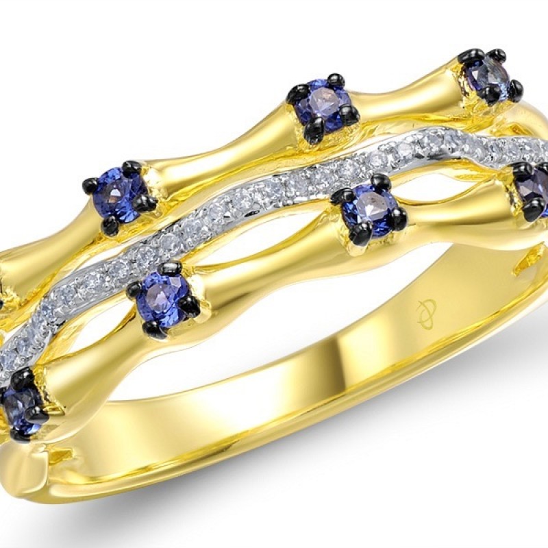 Sterling Silver w/ Yellow Plating Ring Created Sapphire,White Cubic Zirconia (R309064CRSZSY925)