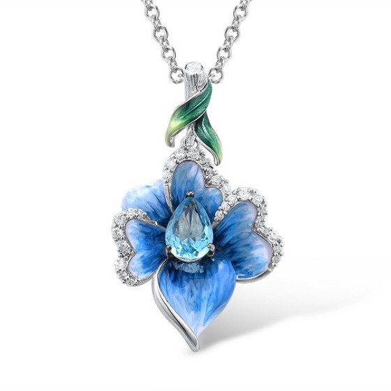 Sterling Silver w/ Black White Plating Pendant Blue Glass,Enamel,White Cubic Zirconia (P306764ENA1SK925)