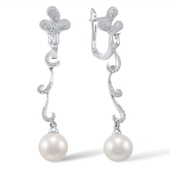Sterling Silver Earrings Fresh Water White Pearl,White Cubic Zirconia (E304013FWZSL925)