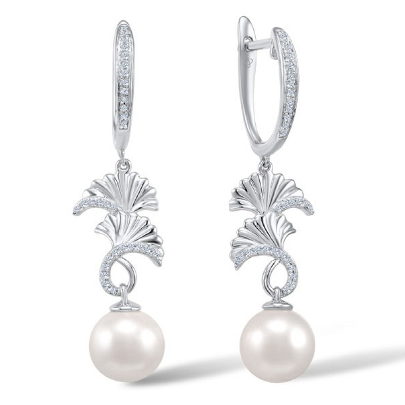Sterling Silver Earrings Fresh Water White Pearl,White Cubic Zirconia (E304009FWZSL925)
