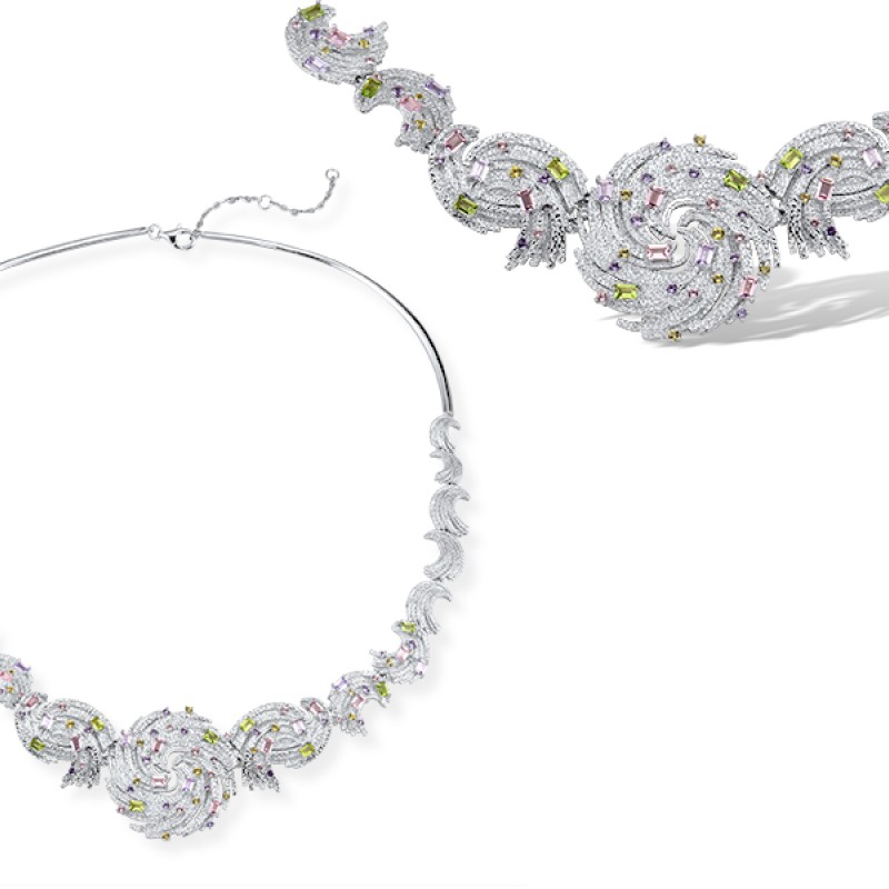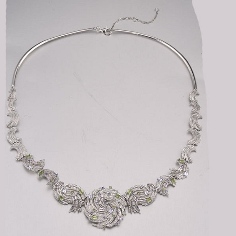 Sterling Silver Necklace Created Purple Nano Spinel,Dark Purple CZ,Green Nano Cubic Zirconia (Per,Nano pink spinel (N315699GPSZSL925)