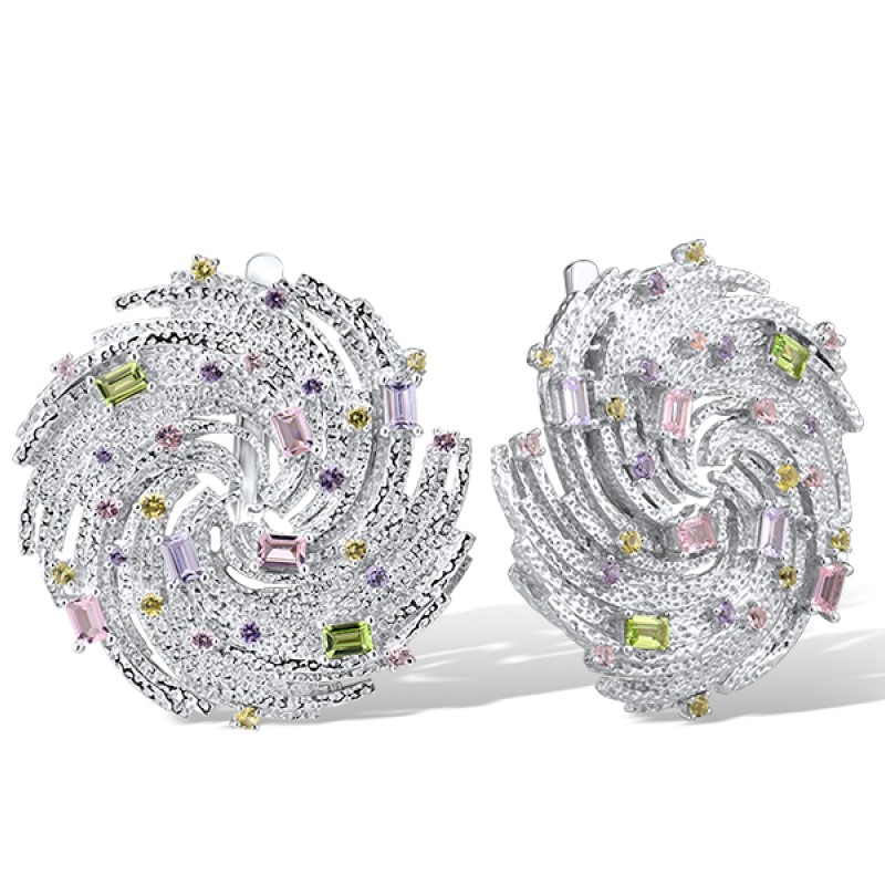 Sterling Silver Earrings Created Purple Nano Spinel,Dark Purple CZ,Green Nano Cubic Zirconia (Per,Nano pink spinel (E315699GPSZSL925)