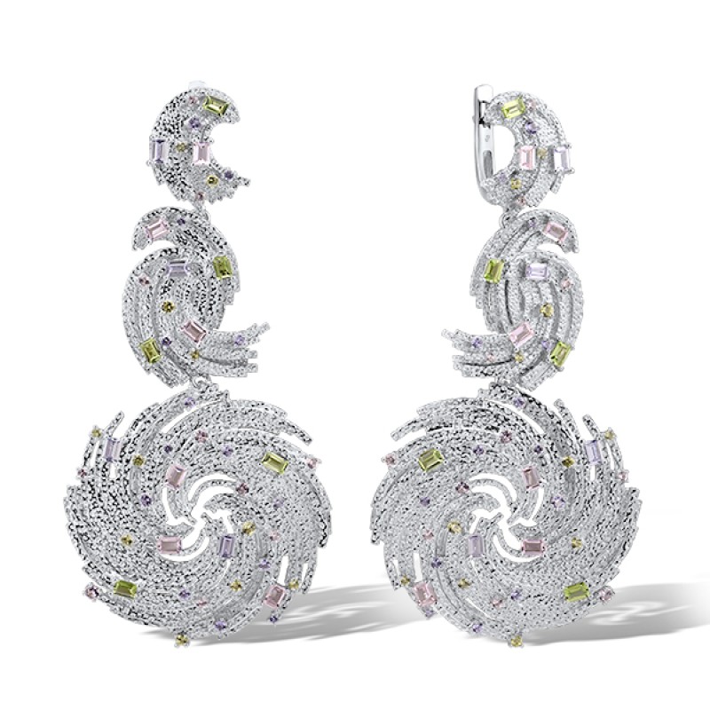 Sterling Silver Earrings Created Purple Nano Spinel,Dark Purple CZ,Green Nano Cubic Zirconia (Per,Nano pink spinel (E315699AGPSZSL925)