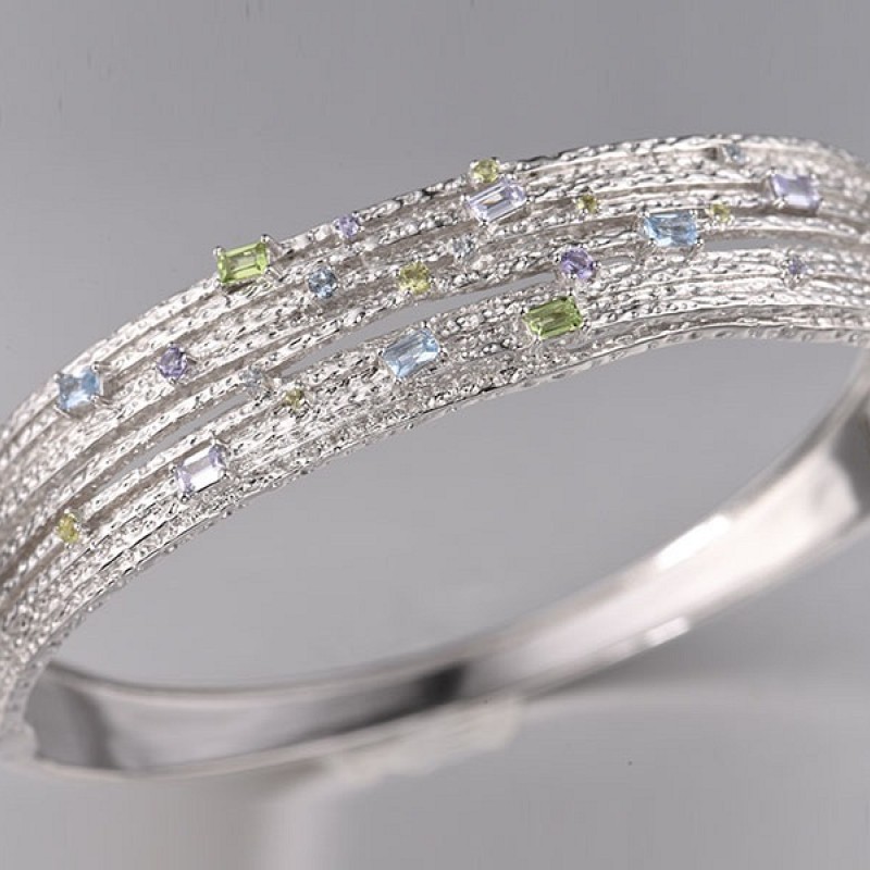 Sterling Silver Bangle Blue Spinel,Created Purple Nano Spinel,Dark Purple CZ,Green Nano Cubic Zirconia (Per (G315652BGNPSL925)