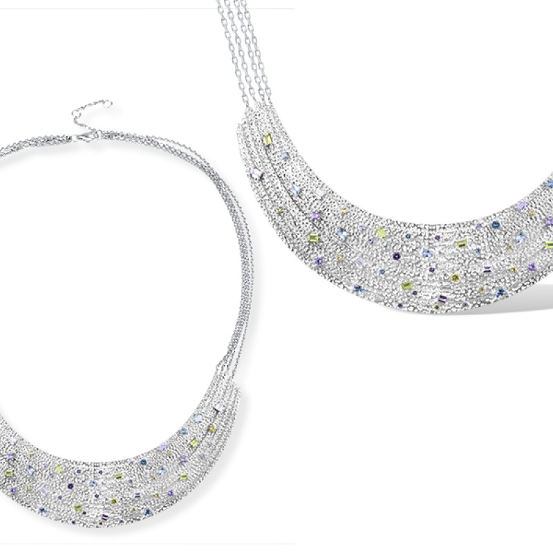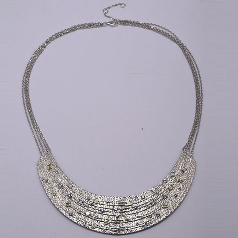 Sterling Silver Necklace Blue Spinel,Created Purple Nano Spinel,Dark Purple CZ,Green Nano Cubic Zirconia (Per (N315652BGNPSL925)