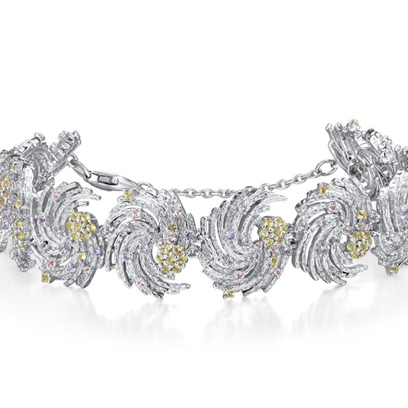 Sterling Silver Bracelet Created Purple Nano Spinel,Green Nano Cubic Zirconia (Per,Nano pink spinel (B315646AGPSZSL925)