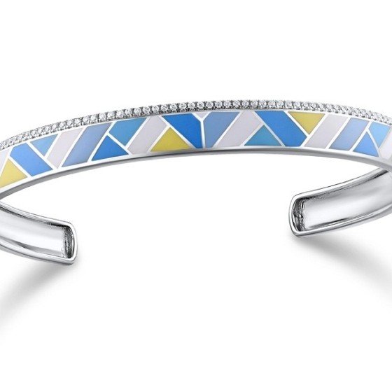 Sterling Silver Bangle Enamel,White Cubic Zirconia (G311911ENASL925)