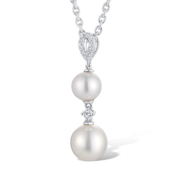 Sterling Silver Pendant Created white sapphire,Fresh Water White Pearl,White Cubic Zirconia (P311637CFPZSL925)