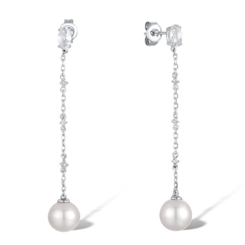 Sterling Silver Earrings Created white sapphire,Fresh Water White Pearl,White Glass (E311613CFPWSL925)