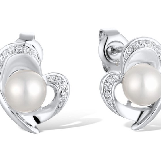 Sterling Silver Earrings Fresh Water White Pearl,White Cubic Zirconia (E311602FWZSL925)