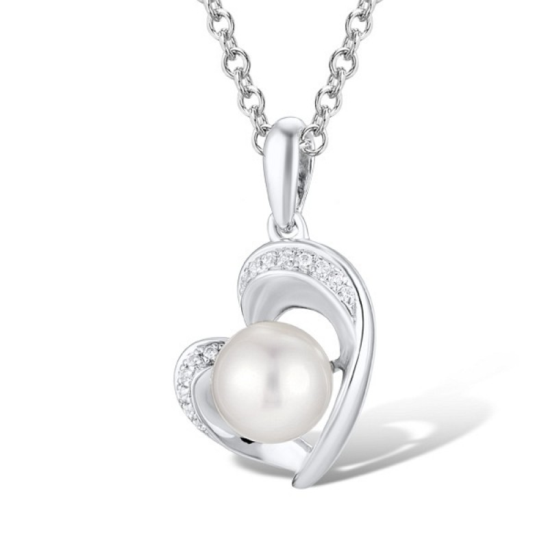 Sterling Silver Pendant Fresh Water White Pearl,White Cubic Zirconia (P311602FWZSL925)