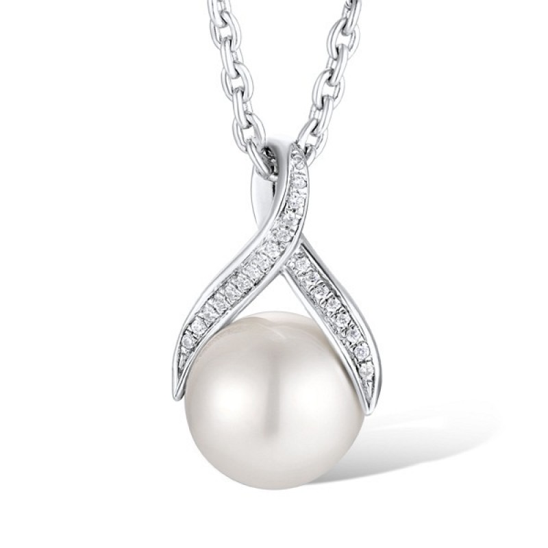 Sterling Silver Pendant Fresh Water White Pearl,White Cubic Zirconia (P311599FWZSL925)