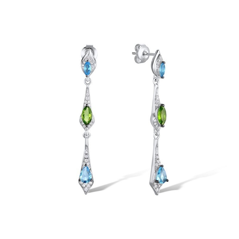 Sterling Silver w/ Black White Plating Earrings Blue Glass,Green Glass,White Cubic Zirconia (E311085BGRZSK925)