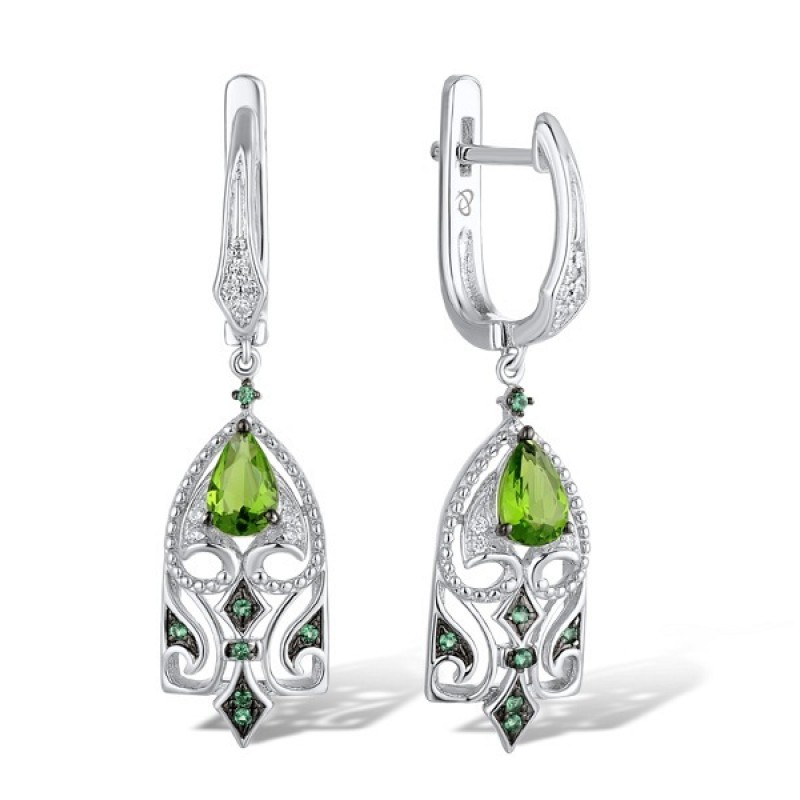 Sterling Silver w/ Black White Plating Earrings Green Glass,Green Spinel,White Cubic Zirconia (E311073GGNZSK925)