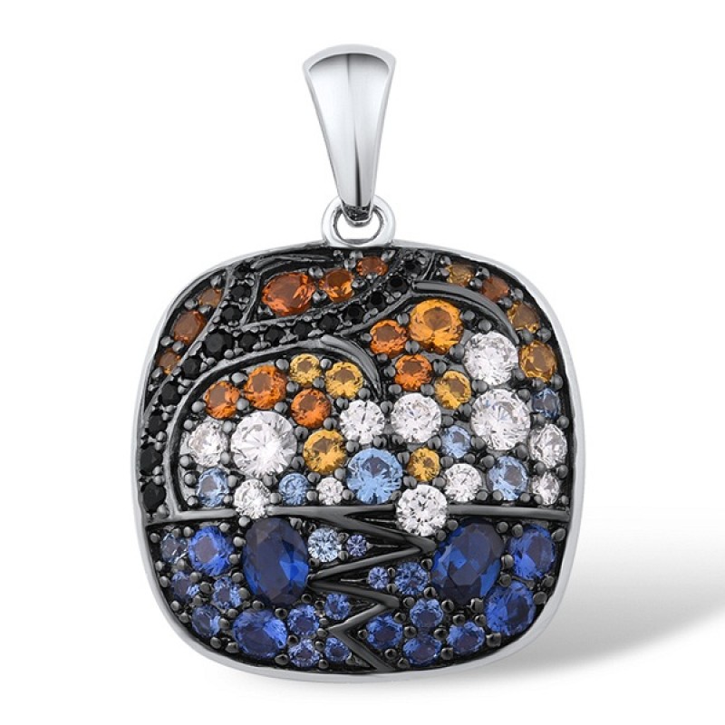 Sterling Silver w/ Black White Plating Pendant Black spinel,Blue Nano Cubic Zirconia,Blue Spinel,White Cubic Zirconia,Yellow Nano Cubic Zirconia (Ci (P311070MUL2SK925)