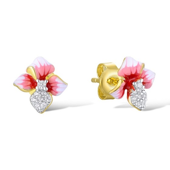 Sterling Silver w/ IONIC YELLOW PLATING Earrings Enamel,White Cubic Zirconia (E310706ENASP925)