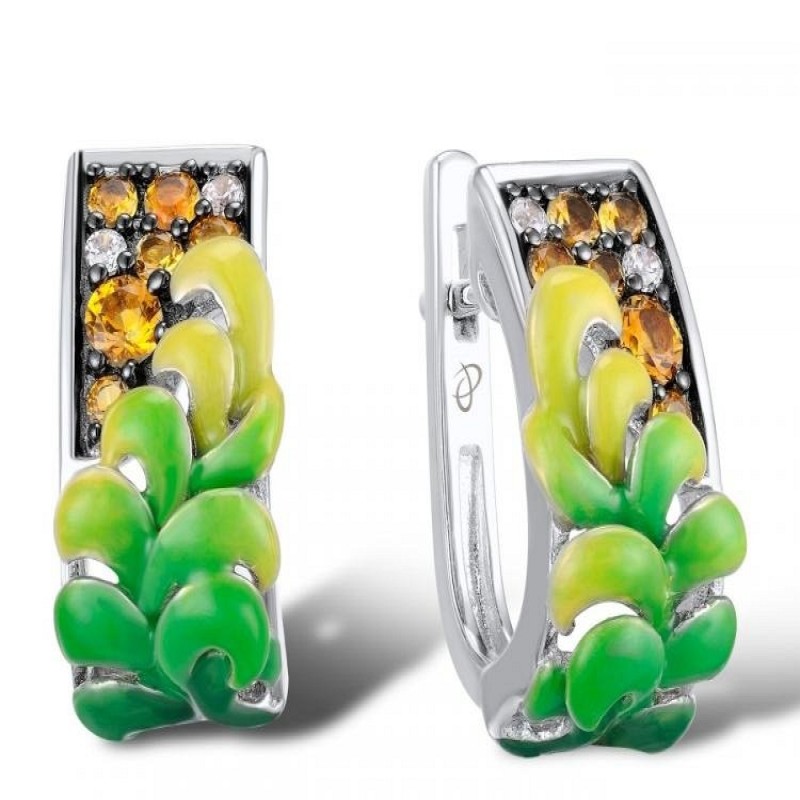 Sterling Silver w/ Black White Plating Earrings Enamel,White Cubic Zirconia,Yellow Nano Cubic Zirconia (Ci (E310658ENASK925)