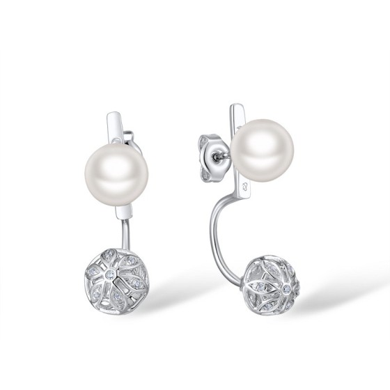 Sterling Silver Earrings Fresh Water White Pearl,White Cubic Zirconia (E309823FWZSL925)