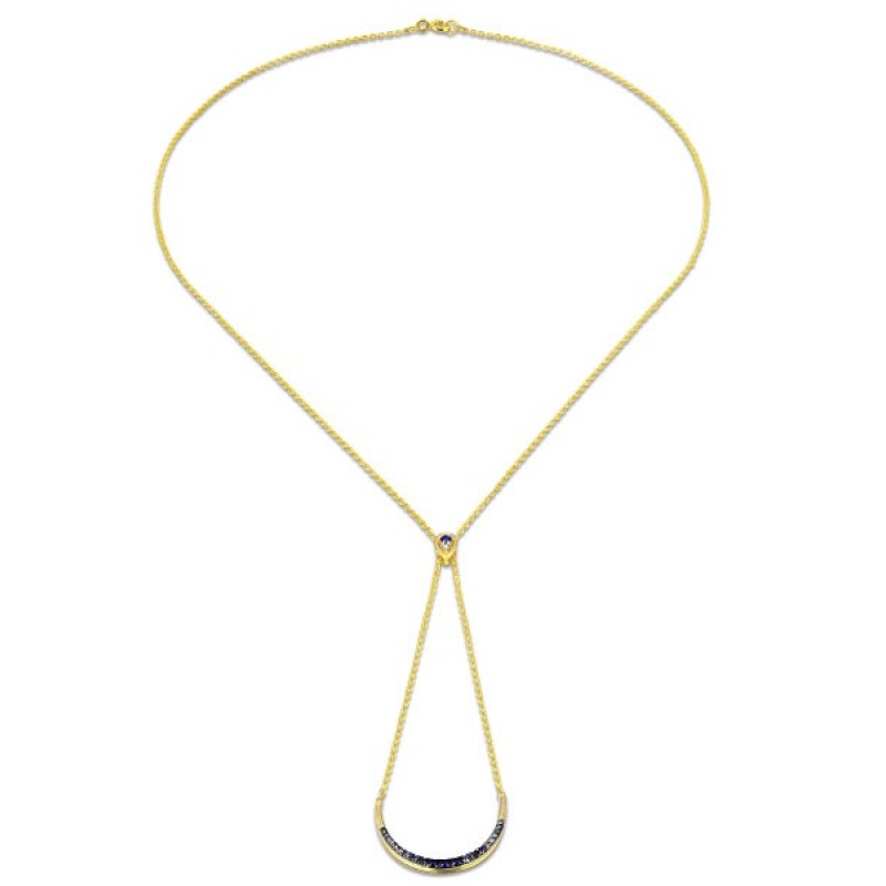 Sterling Silver w/ Yellow Plating Necklace Created Sapphire,White Cubic Zirconia (N309549CRSZSY925)