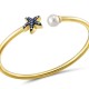 Sterling Silver w/ Yellow Plating Bangle Blue Spinel,Fresh Water White Pearl,White Cubic Zirconia (G309487BFPZSY925)