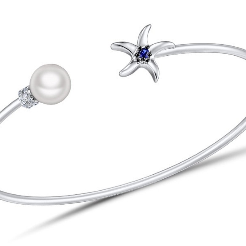 Sterling Silver Bangle Created Sapphire,Fresh Water White Pearl,White Cubic Zirconia (G309485CFSZSL925)
