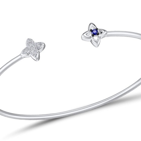 Sterling Silver Bangle Created Sapphire,White Cubic Zirconia (G309479CRSZSL925)