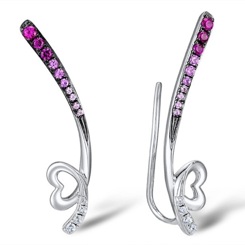 Sterling Silver w/ Black White Plating Earrings Created Pink Sapphire,Created Ruby,White Cubic Zirconia (E309444CPRZSK925)