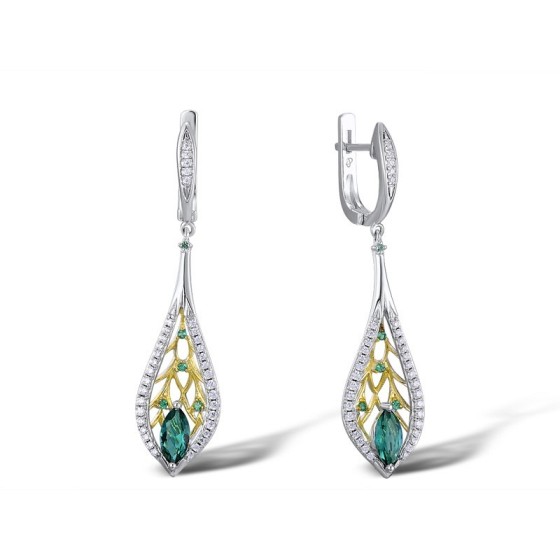Sterling Silver w/ IONIC YELLOW PLATING Earrings Green Glass,Green Spinel,White Cubic Zirconia (E309297GGNZSP925)