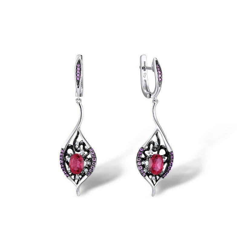 Sterling Silver w/ Black White Plating Earrings Created Pink Sapphire,Pink Glass,White Cubic Zirconia (E309295PGCZSK925)