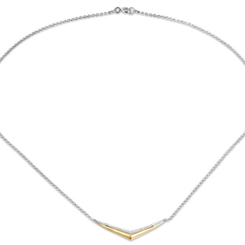 Sterling Silver w/ IONIC YELLOW PLATING Necklace White Cubic Zirconia (N309086WCZSP925)