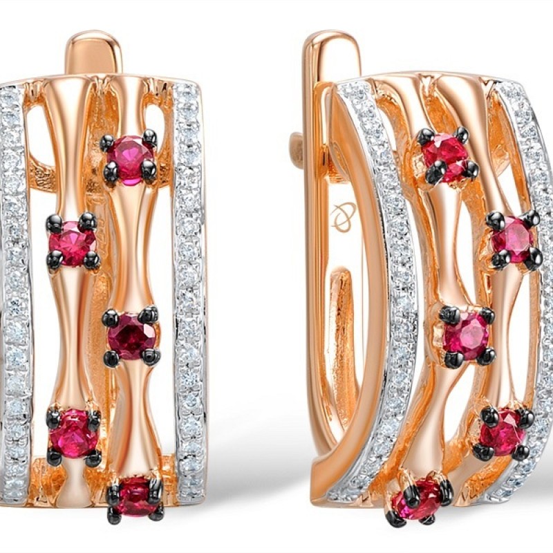 Sterling Silver w/ Rose Plating Earrings Created Ruby,White Cubic Zirconia (E308993CRZSR925)
