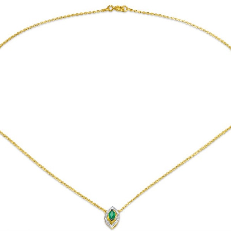 Sterling Silver w/ Yellow Plating Necklace Dyed Green Agate,White Cubic Zirconia (N308976GEZSY925)