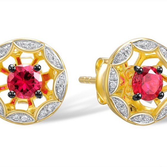 Sterling Silver w/ Yellow Plating Earrings Created Ruby,White Cubic Zirconia (E308973CRZSY925)