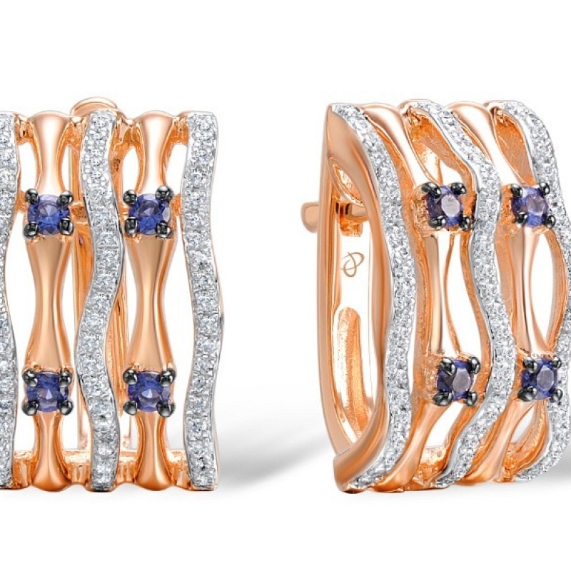 Sterling Silver w/ Rose Plating Earrings Blue Nano Cubic Zirconia,White Cubic Zirconia (E308877BZZSR925)