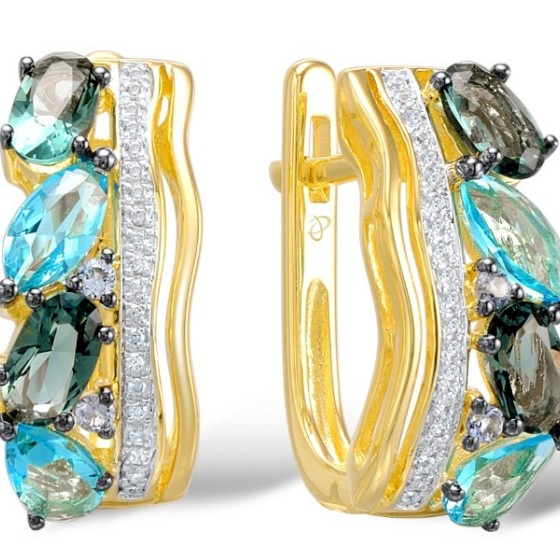 Sterling Silver w/ Yellow Plating Earrings Blue Glass,Blue Spinel,White Cubic Zirconia (E308291BGNZSY925)