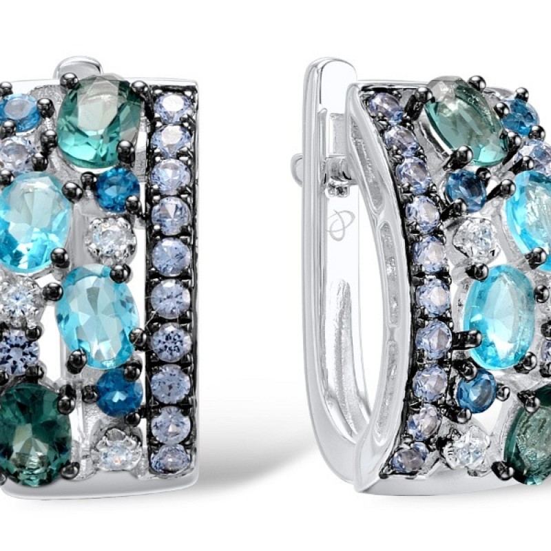 Sterling Silver Earrings Blue Glass,Blue Spinel,London Blue Topaz,White Cubic Zirconia (E308287MULSL925)