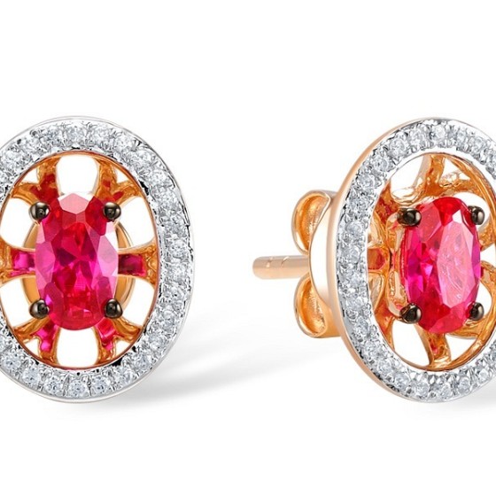 Sterling Silver w/ Rose Plating Earrings Created Ruby,White Cubic Zirconia (E308271CRZSR925)