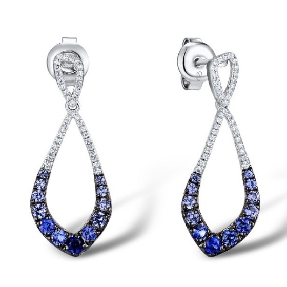 Sterling Silver w/ Black White Plating Earrings Created Sapphire,White Cubic Zirconia (E307421CRSZSK925)
