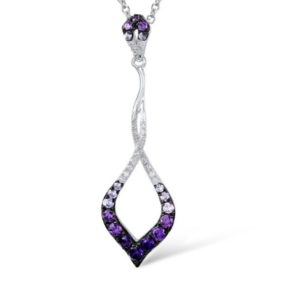 Sterling Silver w/ Black White Plating Pendant Amethyst Cubic Zirconia,Light Purple Cubiz Zirconia,White Cubic Zirconia (P307419ALUZSK925)
