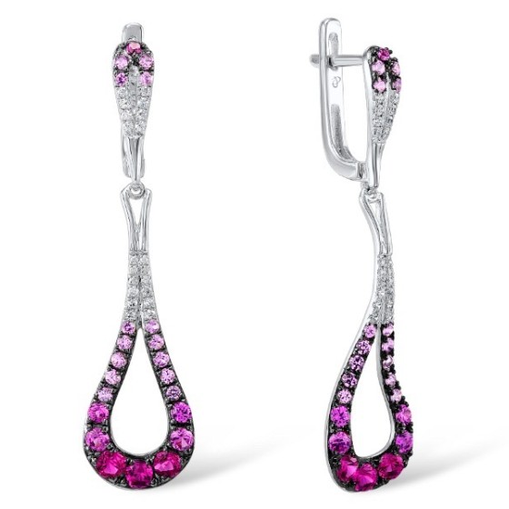 Sterling Silver w/ Black White Plating Earrings Created Pink Sapphire,Created Ruby,White Cubic Zirconia (E307417CPRZSK925)