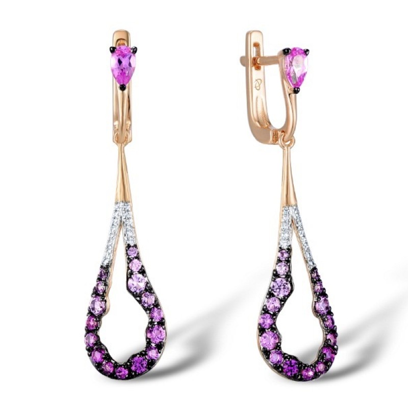 Sterling Silver w/ Rose Black White Plating Earrings Created Pink Sapphire,White Cubic Zirconia (E307414CPSZSV925)