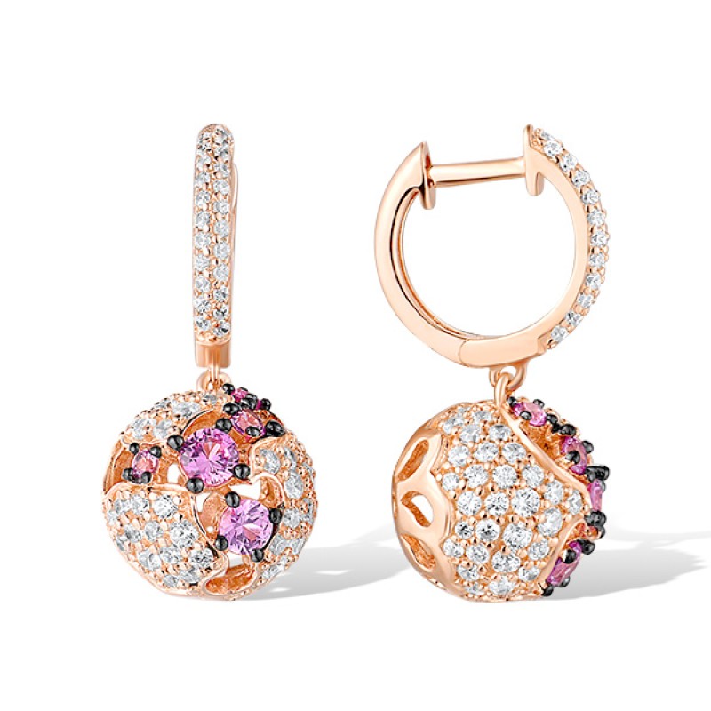 Sterling Silver w/ Rose Black Plating Earrings Created Pink Sapphire,White Cubic Zirconia (E306942CPSZSD925)