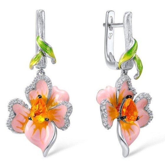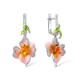 Sterling Silver Earrings Enamel,Orange Glass,White Cubic Zirconia (E306764ENASL925)